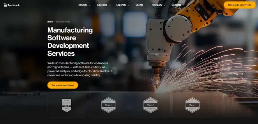 Techstack builds manufacturing projects around production KPIs and operational continuity from day one. Every engagement is treated as a long-term technical commitment, not a series of separate deliverables. Their engineers have hands-on experience with IoT integration for factory floor data, computer vision for automated quality control, predictive maintenance systems, and MES development.